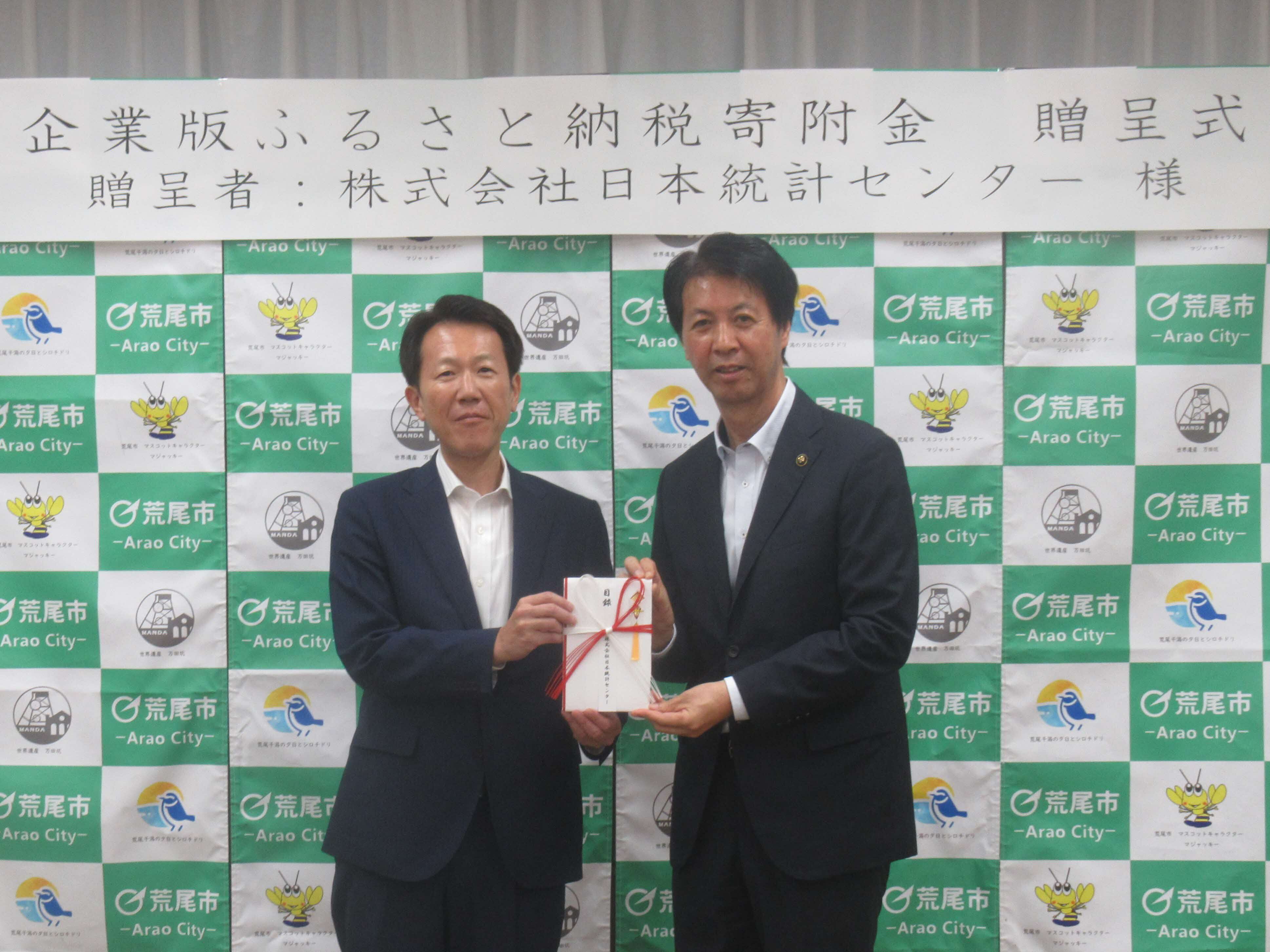 企業版ふるさと納税寄附金贈呈式を開催しました(株式会社日本統計センター)